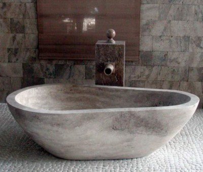 - La pierre naturelle : pour un aspect plus neutre les petits carreaux en pierre naturelle véhiculent un côté naturel notamment au travers d’un veinage déstructuré comme c’est souvent le cas avec le marbre. Un autre option possible sont les cailloux posés sur trame qui offrent une chaleur unique et une texture douce et naturelle dans une salle de bain.