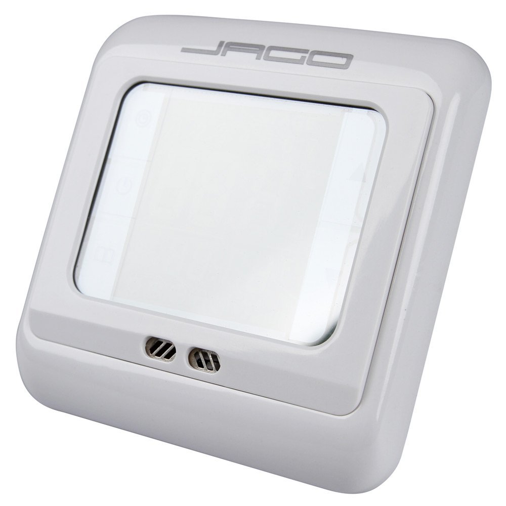 Le thermostat d’ambiance Jago ouvre une nouvelle ère pour les thermostats d’ambiance avec ses écrans verts tactiles de bonne facture qui remplacent les traditionnels boutons-poignée. La lecture des options devient plus claire, qu’il s’agisse de programmer la température ou simplement de régler l’heure. Les modèles Jago sont compatibles avec les radiateurs électriques et les systèmes d’eau chaude de chauffage électrique et permettent de réaliser des économies d’énergie au biais d’un système de programmation intelligent destiné à diffuser et réguler la chaleur au bon moment. Il est équipé d’un système de verrouillage des touches qui est appréciable si les enfants ont accès au dispositif.