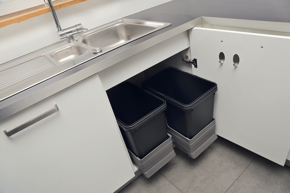 - Sous l’évier : c’est l’emplacement classique. On y installe souvent une poubelle à compartiments, permettant de trier les déchets (organiques, recyclables, verre). L’avantage : elle est discrète et proche de la zone de lavage. L’inconvénient : l’espace est réduit et peut vite devenir encombré.