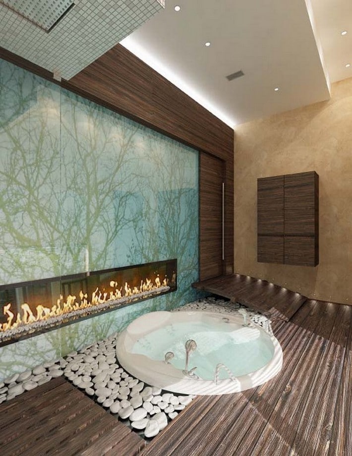 Une cheminée dans la salle de bain ou comment rendre votre salle de bain irrésistible.